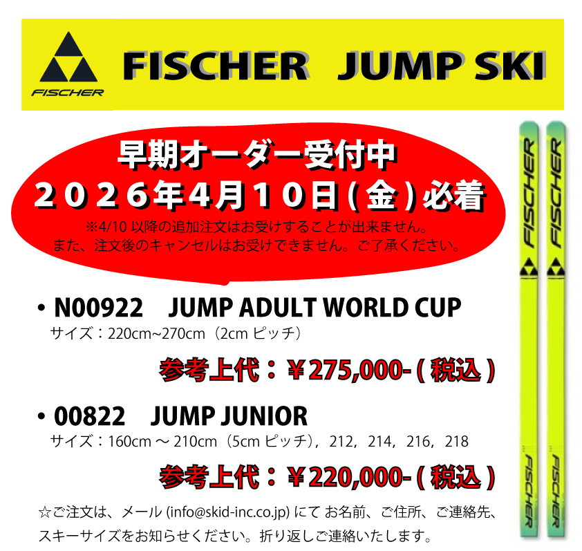 FISCHER JUMP SKI 早期オーダー受付開始いたします!